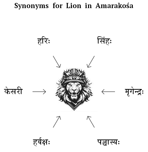 सिंहो मृगेन्द्रः पञ्चास्यो हर्यक्षः केसरी हरिः (Amarakośa 2.5.1)